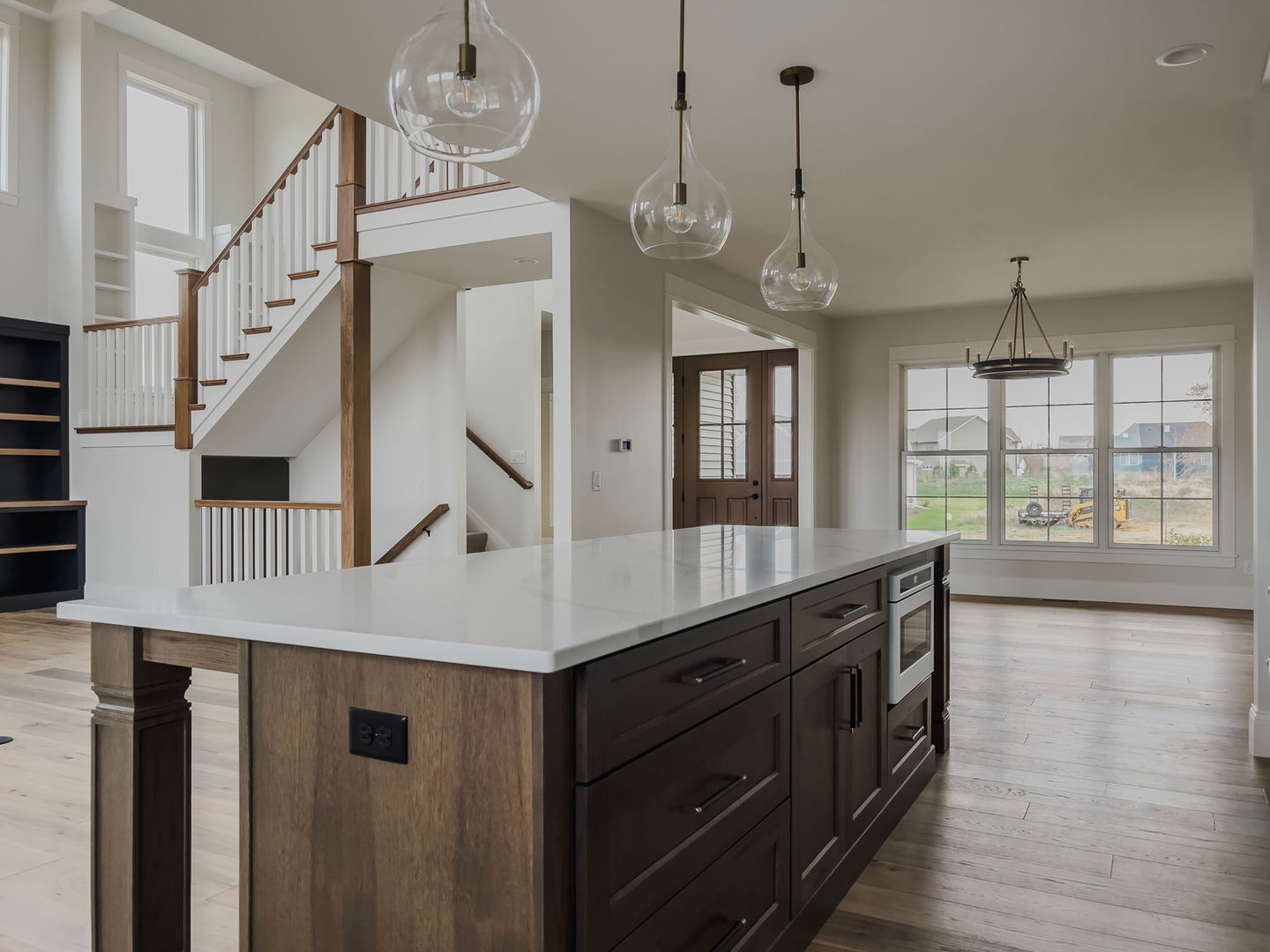 A recent custom home featuring a stunning 2-story great room, catwalk, and large windows allowing for plenty of natural light. The custom kitchen in this home is a standout feature, perfect for anyone who loves to cook and entertain.